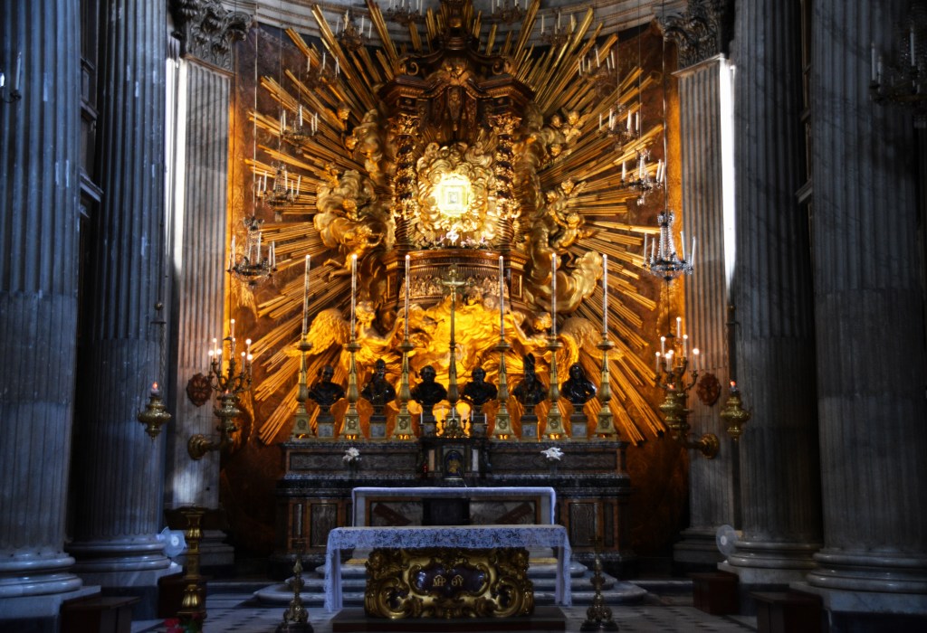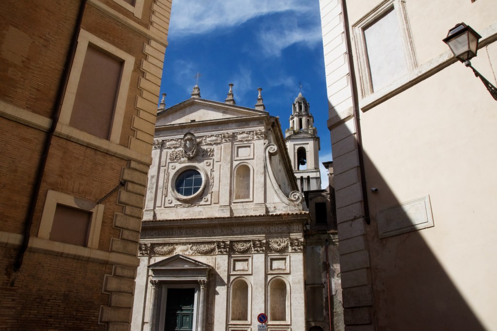Rome has a surfeit of amazing church interiors, especially the baroque ones. It’s a bit of a shock to the system if you are used to the austerity of Northern European churches. This one, Santa Maria in Portico in Campitelli, designed by Carlo Rainaldi, looks as if the altar is on fire.