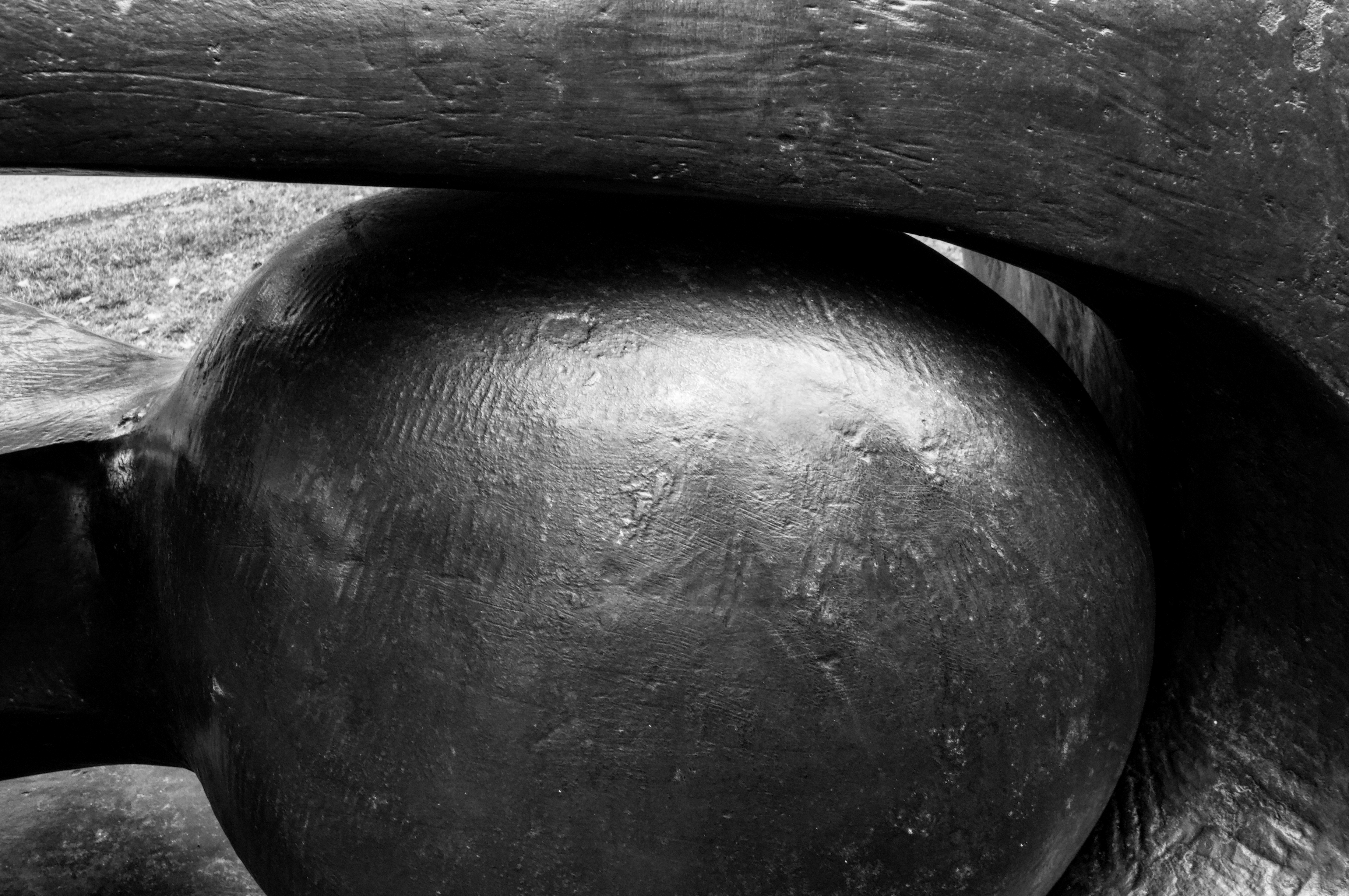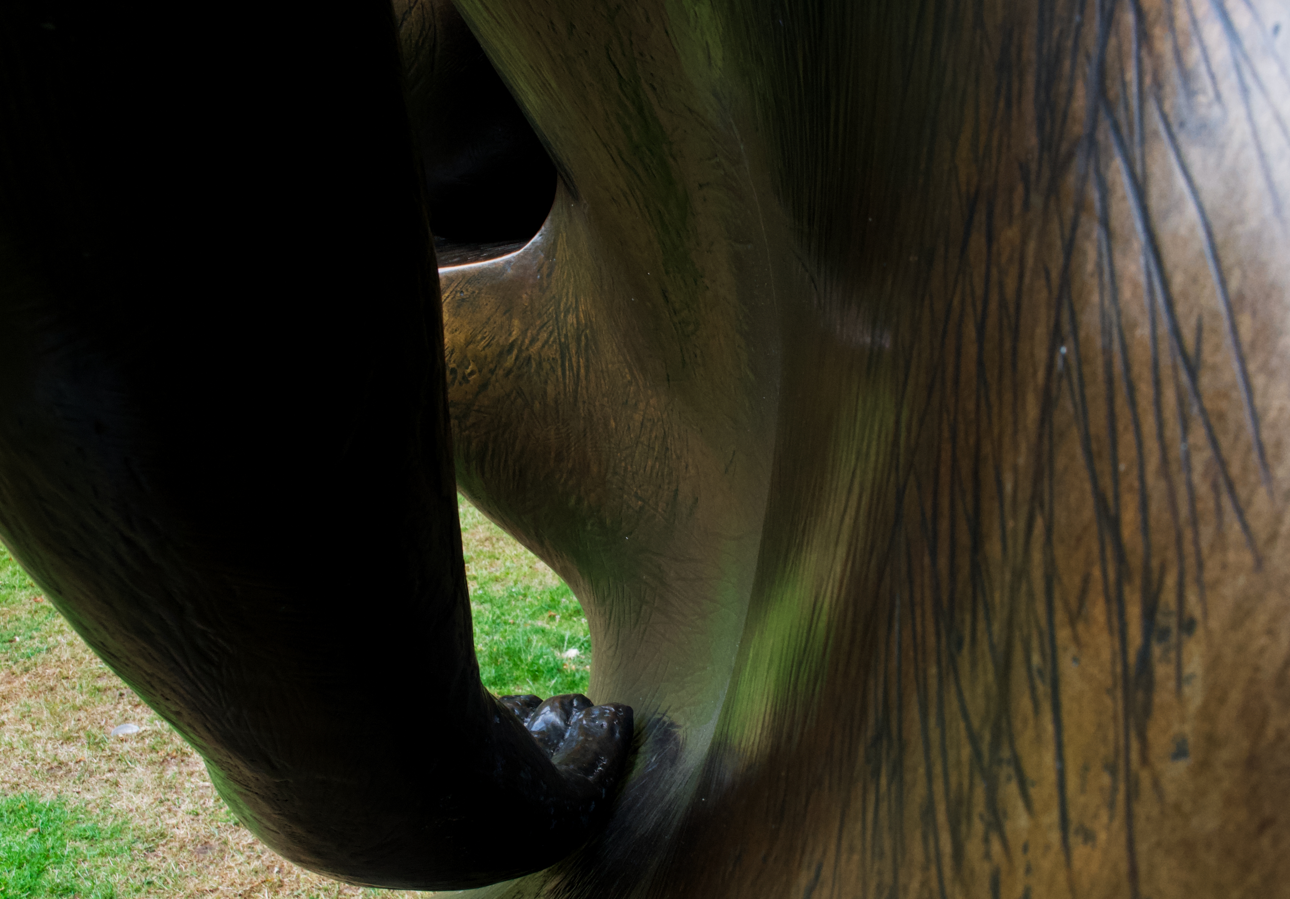 I always thought of Moore’s sculptures as being smooth as polished brass but up close you can see how he’s scarred and scratched the surface of some works. It makes them feel much more organic – as if they are part of a living organism.