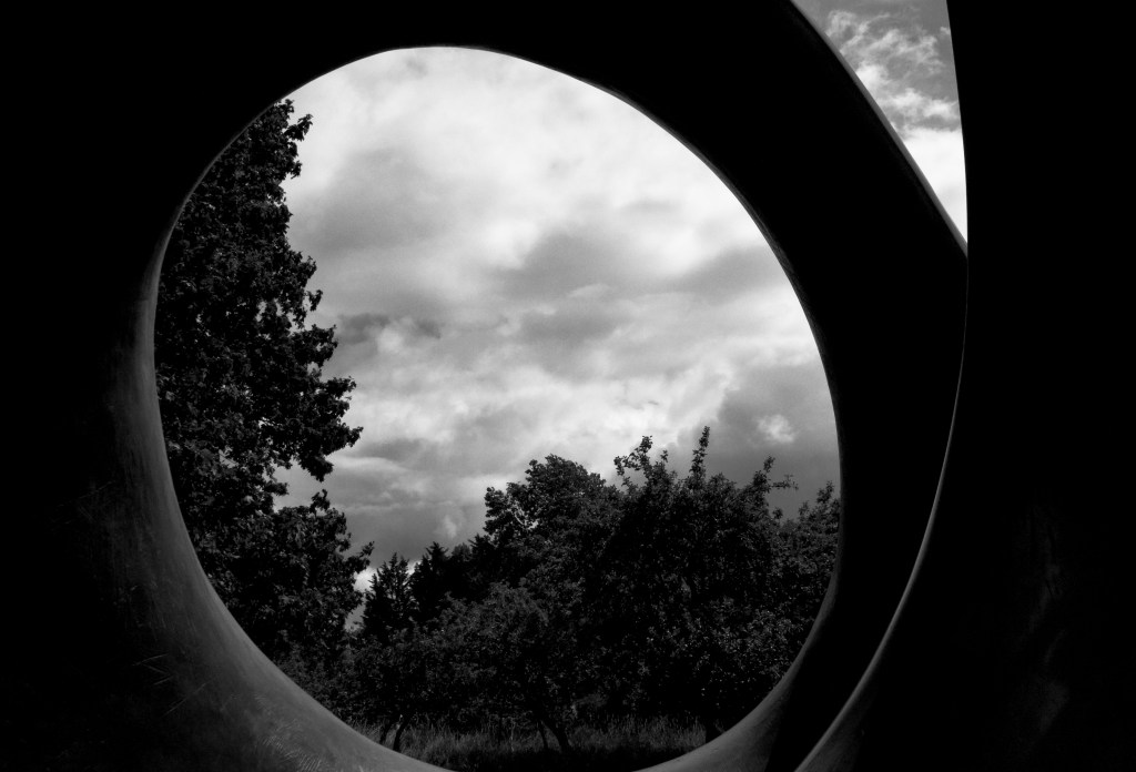 At the studios and gardens, Moore’s work is dotted around in the sheep fields that surround what was his house. These monumental works have the appearance of alien artefacts, deposited without any explanation. The sheep seem unfazed by it all.